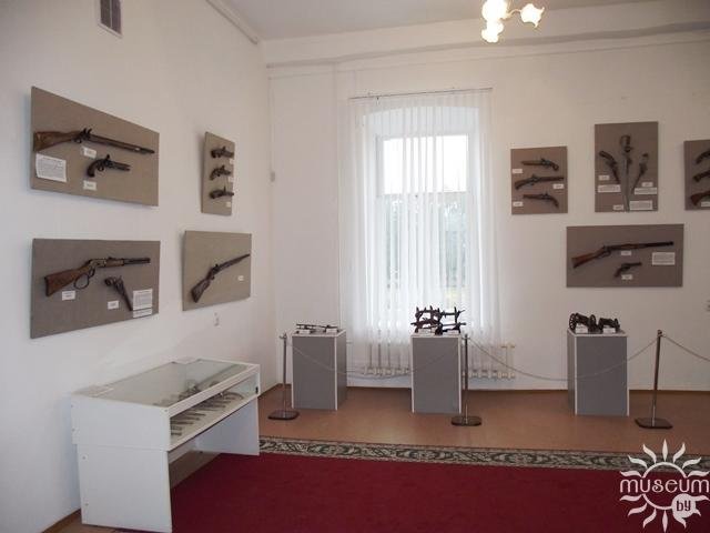 На выставке демонстрируются: модели пушек, кремневые пистолеты, мушкетоны, винчестеры, ружья, кольты, револьверы, комбинированное оружие, кинжалы и т.д.